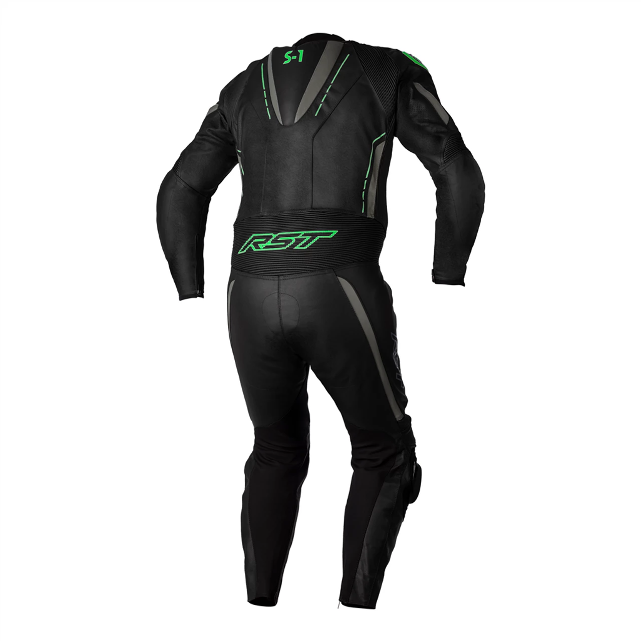 RST S1 CE Mens One Piece Leather Suit – Black / Grey / Neon Green